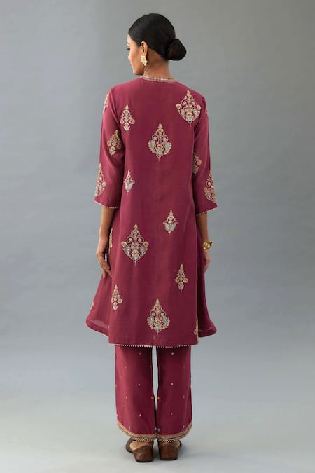 Wine Silk, Chanderi Embroidery, Sequins, Gota Patti Thread Short Anarkali Set