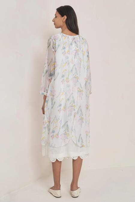 Buy_Eka_White Kota Doria Round Printed Dress _Online_at_Aza_Fashions