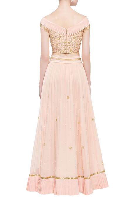 Buy_Kresha Lulla_Peach Pleated Lehenga And Off-shoulder Blouse_at_Aza_Fashions