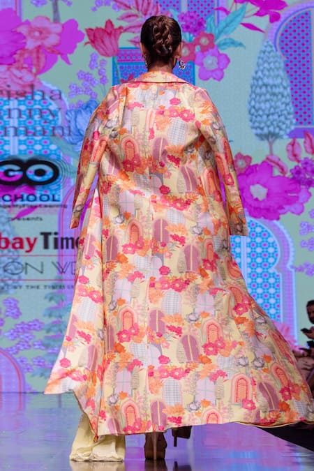 Scalloped saree border, Noodle strap blouse, Floral printed trench coat