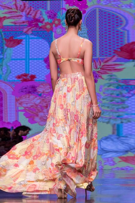 Buy_Krisha Sunny Ramani_Green Crepe Sequins, Embroidery Floral Print Cowl Draped Blouse With Slit Skirt _Online_at_Aza_Fashions
