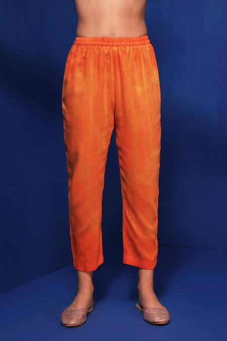 Orange Modal Embroidery Collared Ombre Printed Shirt Tunic And Pant Set