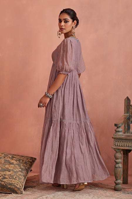 Purple Chanderi Embroidery V-neck Hand Tunic