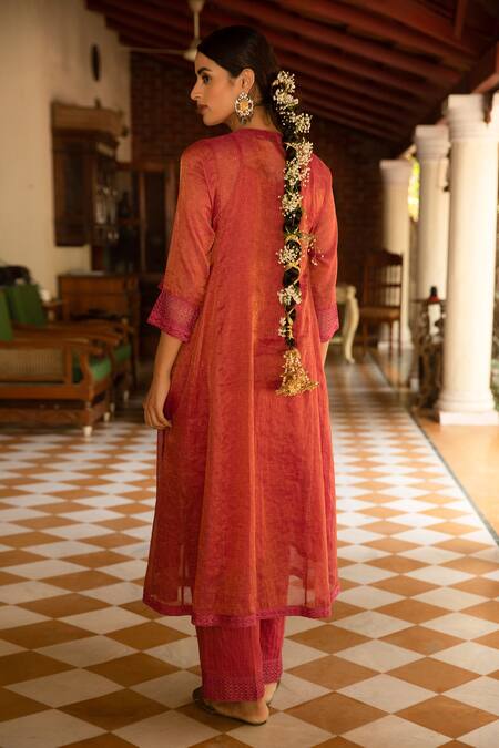 Pink Tissue Chanderi Floral Motifs Round Angarkha Set