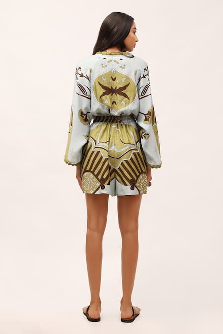 Buy_Kritika Murarka_Blue Cotton, Silk V-neck Floral Print Jumper _Online_at_Aza_Fashions