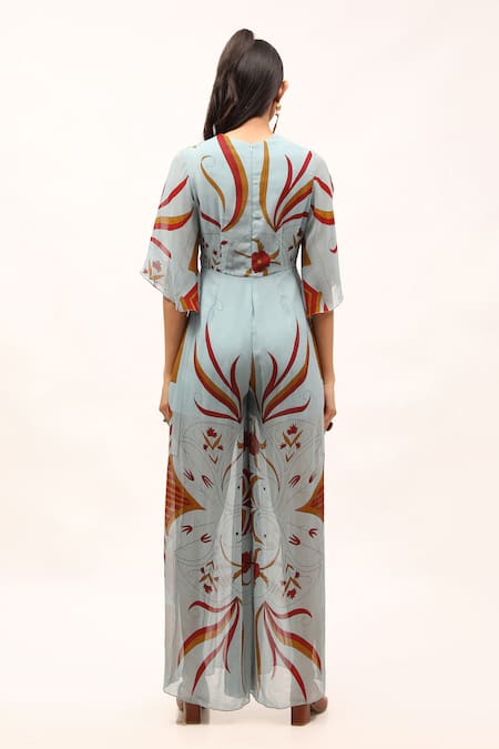 Buy_Kritika Murarka_Blue Chiffon V-neck Paisley Print Jumpsuit _Online_at_Aza_Fashions