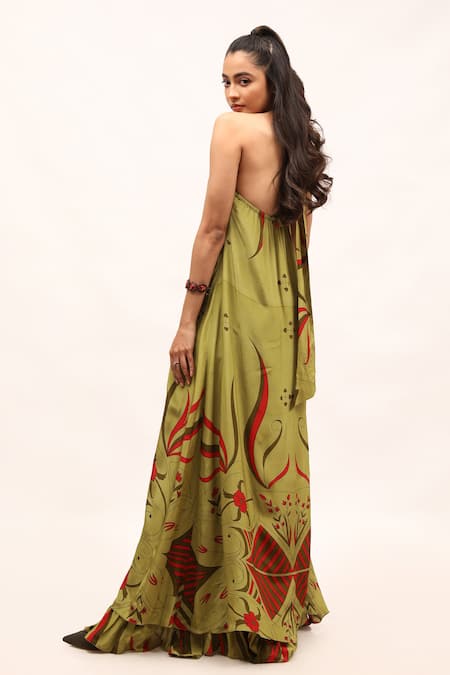 Buy_Kritika Murarka_Green Viscose, Crepe Halter Neck Printed Maxi Dress_Online_at_Aza_Fashions