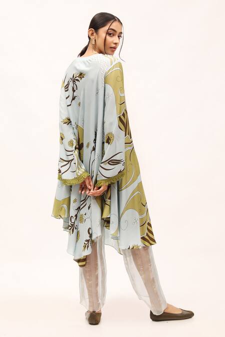 Buy_Kritika Murarka_Blue Organza Silk Striped Pattern Pant _Online_at_Aza_Fashions