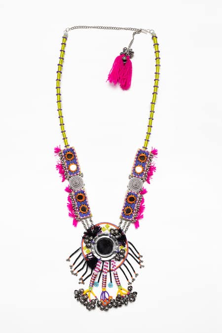 Off White Dhaandhdu Mirror Embellished Pendant Necklace