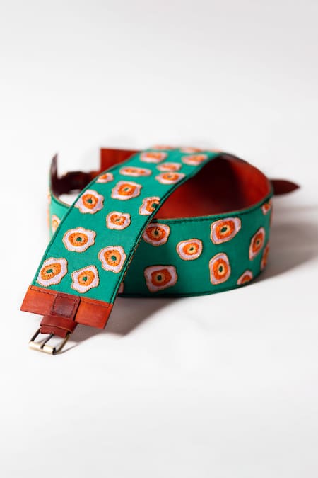 Buy_Krutiarts_Green Embroidery, Sequins, Beads Marbles Abstract Floral Belt- Single Pc _Online_at_Aza_Fashions