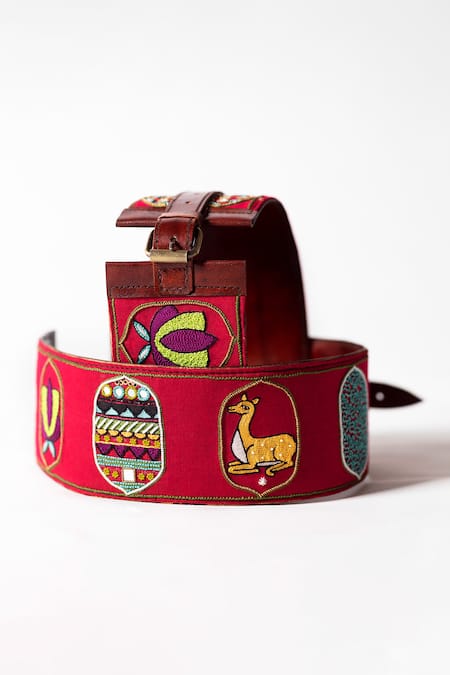 Buy_Krutiarts_Pink Embellished Rummy Thread Embroidered Belt- Single Pc _Online_at_Aza_Fashions