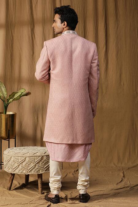 Buy_Kudrat Couture_Pink Silk Embroidered Dabka Sherwani Jacket Churidar Set