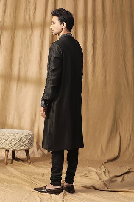 Buy_Kudrat Couture_Black Chanderi Silk Embroidered Gota Zari Kurta And Churidar Set_at_Aza_Fashions