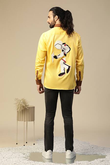 Yellow shirt crafted in premium cotton featuring a hand painted aero astro pattern