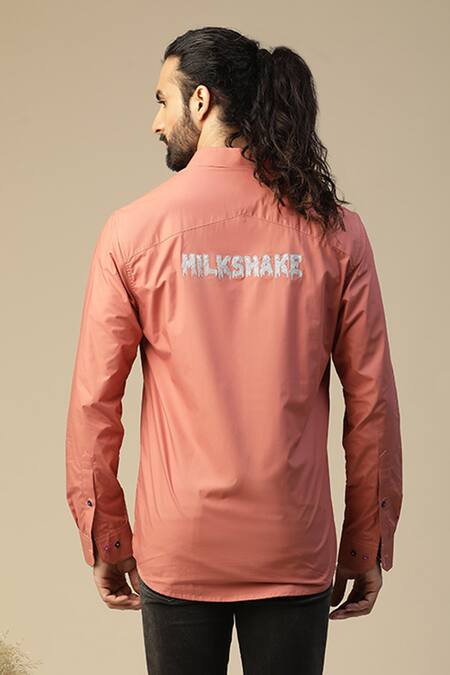 Buy_Kudrat Couture_Peach Premium Cotton Hand Painted Pride Ufo Pattern Shirt_Online_at_Aza_Fashions