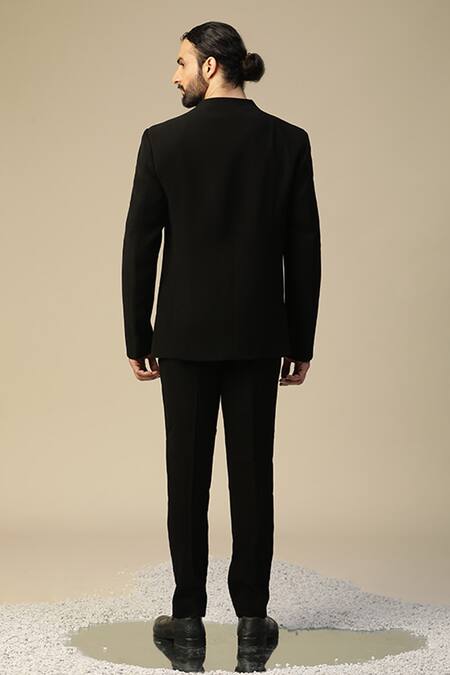 Black suit featuring cutdana, resham, and dori embroidery. Paired with matching pant for a cohesive look.