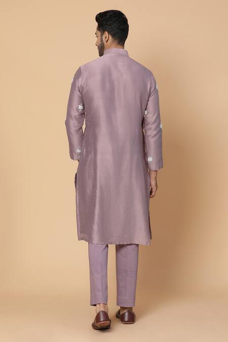 Buy_Kudrat Couture_Purple Chanderi Silk Embroidery Pearl Kurta Set_at_Aza_Fashions
