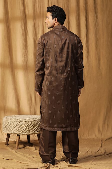 Buy_Kudrat Couture_Brown Silk Embroidered Bead Rooh Kurta And Salwar Set_Online_at_Aza_Fashions