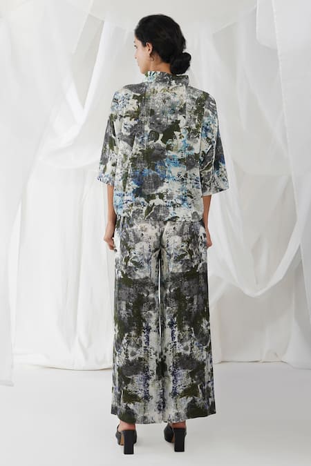 Black 100%cotton Abstract Motifs Mandarin Collar Kumori Printed Shirt