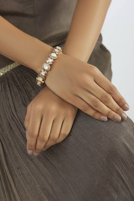 22k gold-plated bangle with encrusted kundan & polki stones.