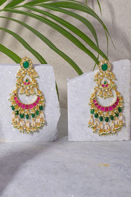 Namasya_Multi Color Pearls, Stones Kundan And Polki Embellished Chandbalis _Online_at_Aza_Fashions