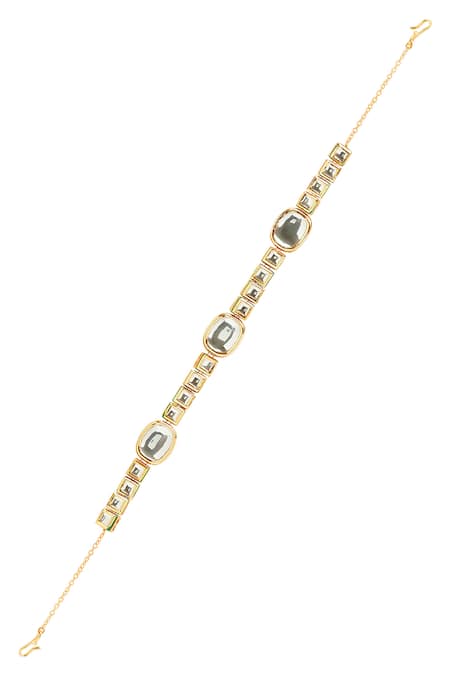 Kundan and polki stone embellishments, Gold tone finish, Fish hook closure for secure fit