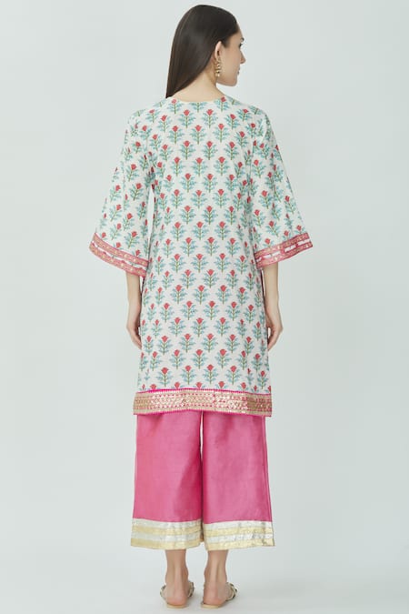 White Mulmul Split Printed Kurta Palazzo Set
