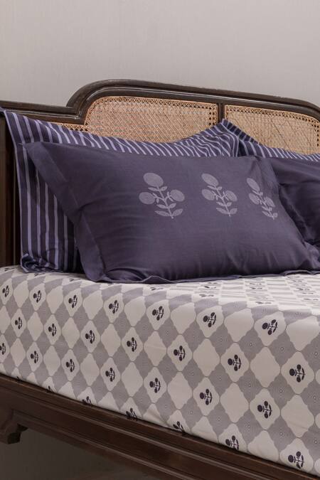 Midnight blue king size bedsheet with all over floral prints. Comes with printed 4 pillowcases.