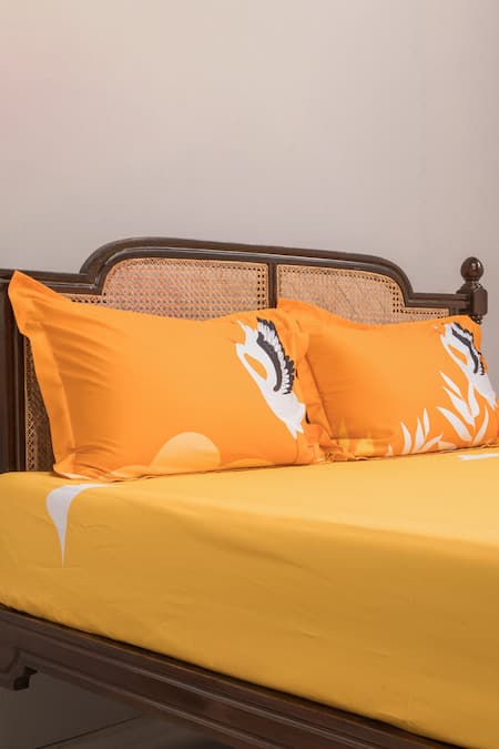 Yellow 100% Cotton Printed The Bird Storks Journey Bedsheet Set
