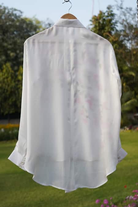 White Modal, Satin Collared Bougainvilleas Bloom Hand Painted Shirt