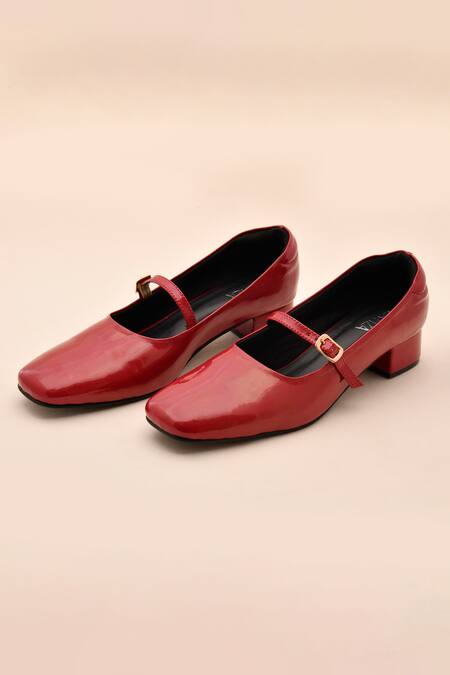 Buy_LA Fiza_Burgundy Buckles Patent Cherry Mary Jane Pumps