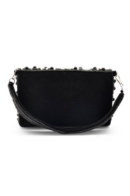 Buy_LA Fiza_Black Pearls, Sequins, Beads Midnight Rhapsody Embellished Clutch Bag_Online_at_Aza_Fashions