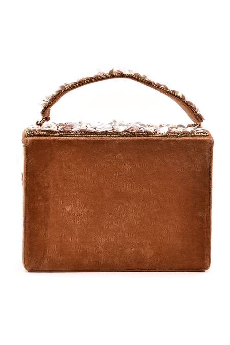 Buy_LA Fiza_Brown Cut Work, Sequins, Pearls Cascade Bloom Embellished Clutch Bag_at_Aza_Fashions