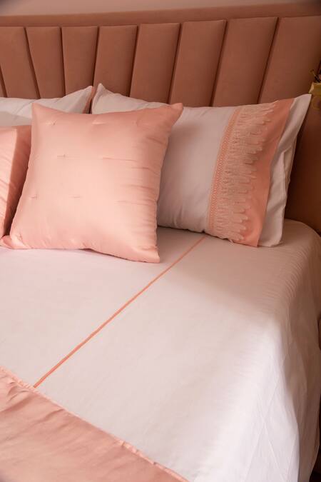 White, peach color block king size bedsheet in a cotton base. Comes with 2 matching pillow covers.