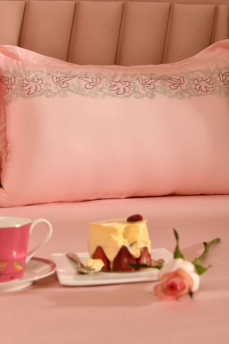 Peach king size bedsheet in a 100% Tencel base. Comes with 2 bird embroidered matching pillow covers.