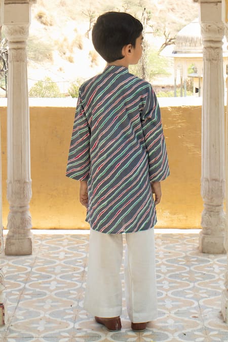 Buy_Laadlo_Blue Indian Cotton Print Leheriya Aparajit Handblock Kurta With Pant_at_Aza_Fashions