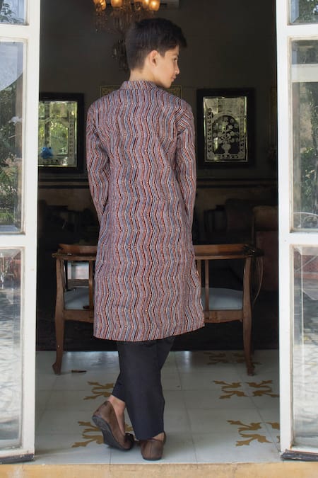 Buy_Laadlo_Black Indian Cotton Print Chevron Wave Bagru Kurta With Pant_at_Aza_Fashions