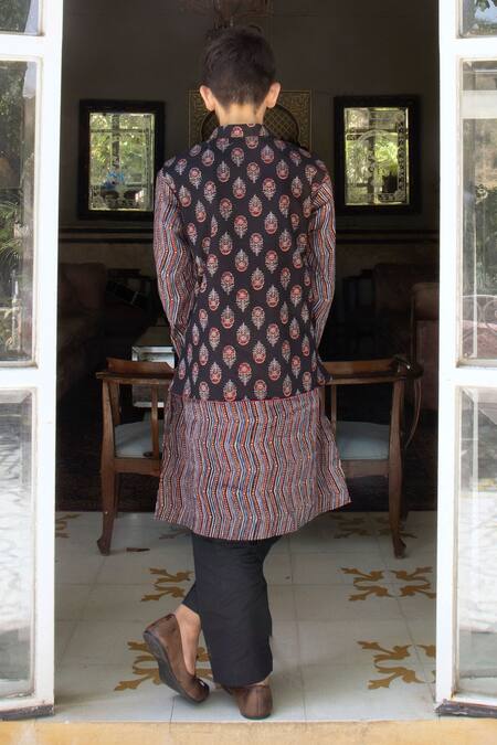 Buy_Laadlo_Black Indian Cotton Print Floral Bagru Handblock Bundi_Online_at_Aza_Fashions