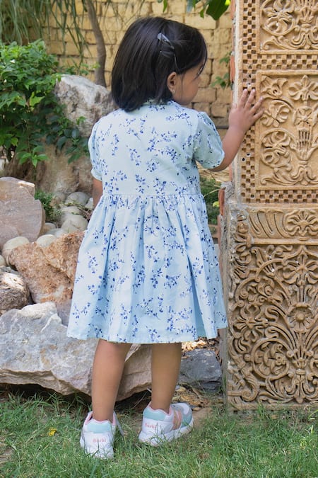Laadlo_Blue Indian Cotton Print Bloom Dandelion Dress_Online_at_Aza_Fashions