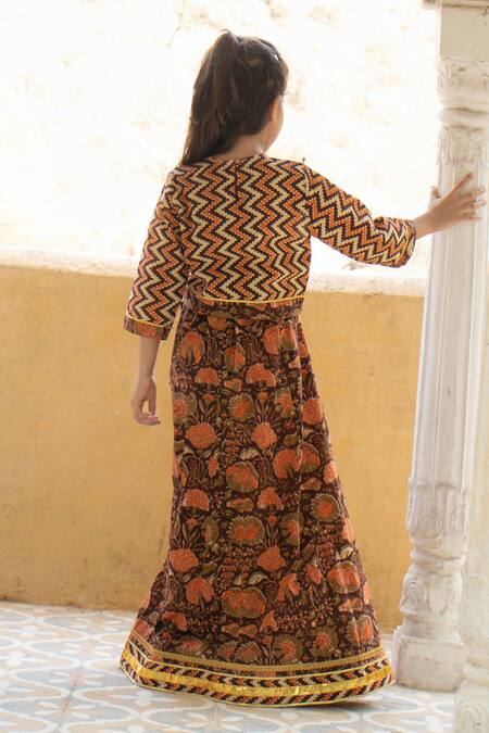 Buy_Laadlo_Brown Indian Cotton Print Wildbloom Nargis Lehenga With Blouse_at_Aza_Fashions