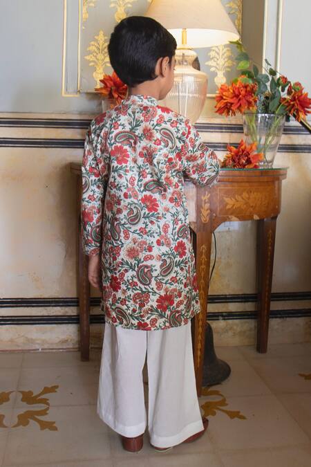 Laadlo_Maroon Indian Cotton Print Sadabahaar Kurta With Pant_Online_at_Aza_Fashions