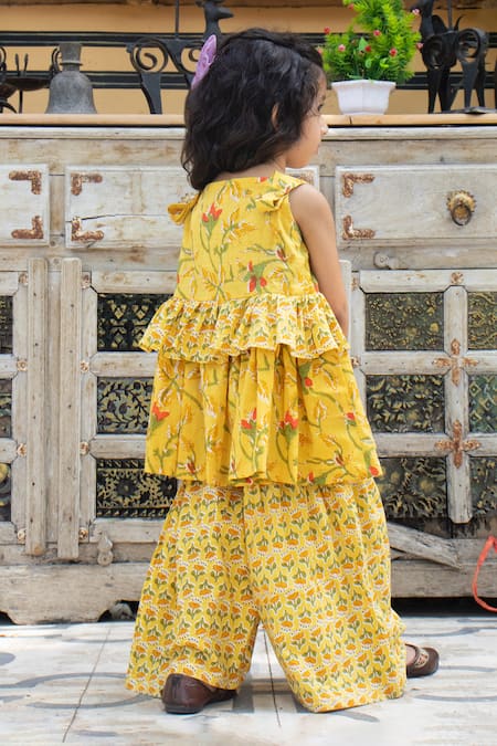 Buy_Laadlo_Yellow Cotton Sunflower Bloom Print Kurta With Sharara_Online_at_Aza_Fashions
