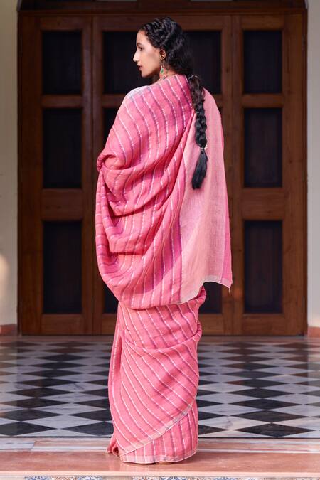 Buy_Dressfolk_Pink Linen Beads Stripe Pattern Saree With Running Blouse_Online_at_Aza_Fashions