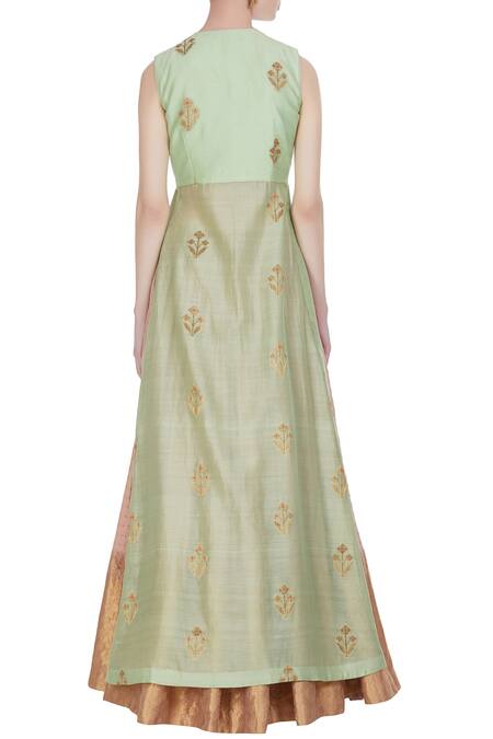 Green Silk Embroidered Banarasi Sweetheart Open Jacket Skirt Set