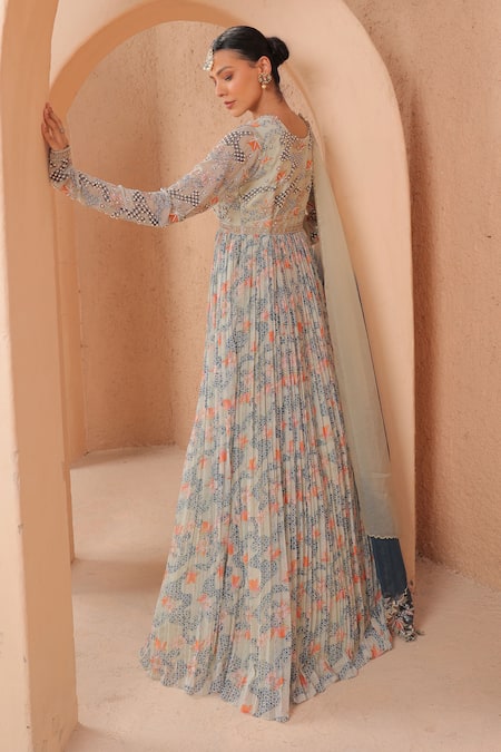 Buy_Label Astha Chhabra_Green Organza, Crepe Pearls, Cut Work Hand Embellished Anarkali With Dupatta _Online_at_Aza_Fashions
