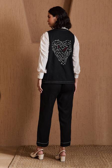 Black co-ord set featuring a jacket, shirt, and pant. The jacket has embroidered details and a relaxed fit.