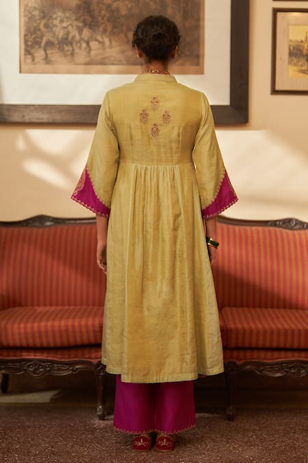 Green Tissue, Silk Embroidery, Sequins, Zari V-neck Rani Floral Anarkali Set