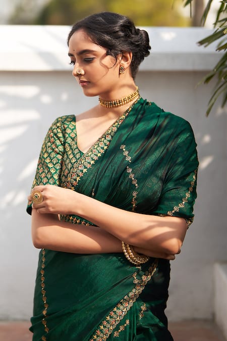 Green Silk Zari, Embroidery Rani Panna Resham Saree
