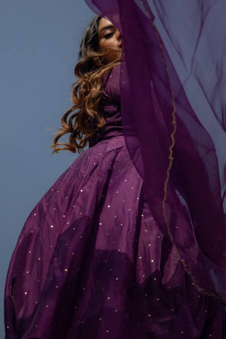 Purple Chanderi, Organza Metallic Thread, Mukaish Anarkali Angrakha Set