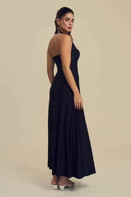 Buy_Label Frow_Black Lycra Halter Neck Raven Dress_Online_at_Aza_Fashions